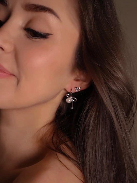 Pearl Silver Bow Earrings
