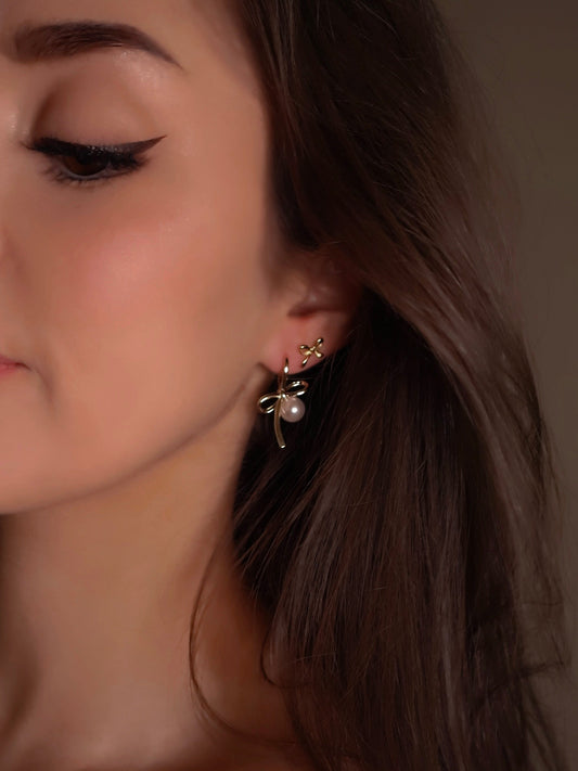 Pearl Gold Bow Earrings