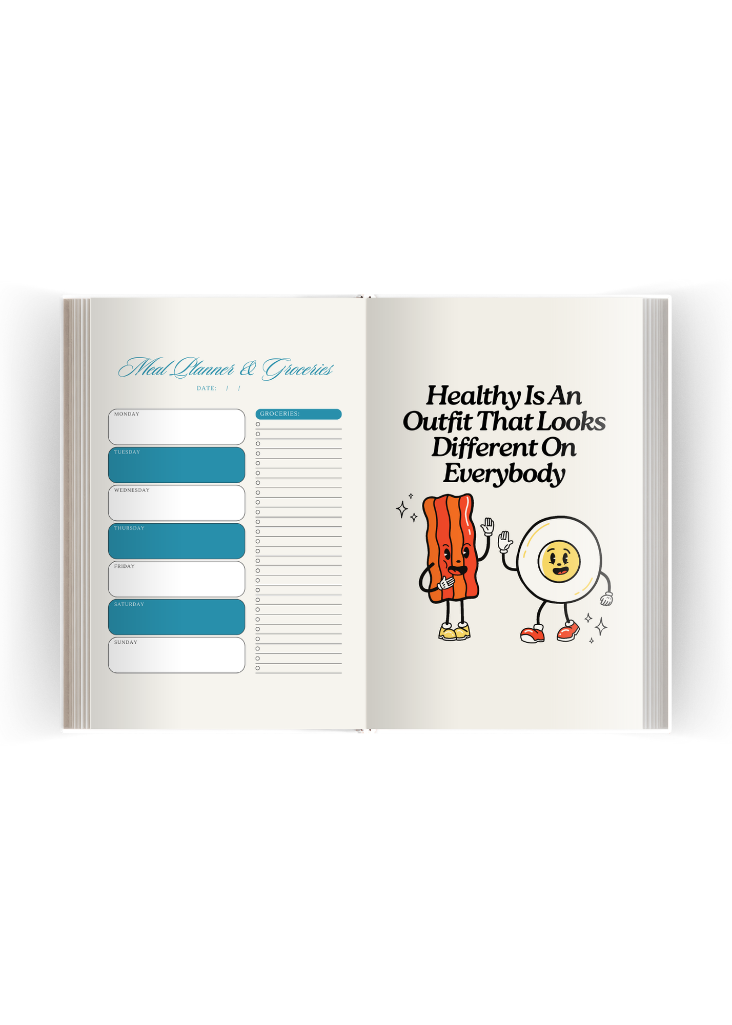 This journal is your personal space to explore your feelings, set positive intentions, and celebrate your progress. Filled with guidance and motivational affirmations, it’s designed to help you build a healthier relationship with yourself, food, and your journey. You’re one tough cookie, and this journal is here to cheer you on.
