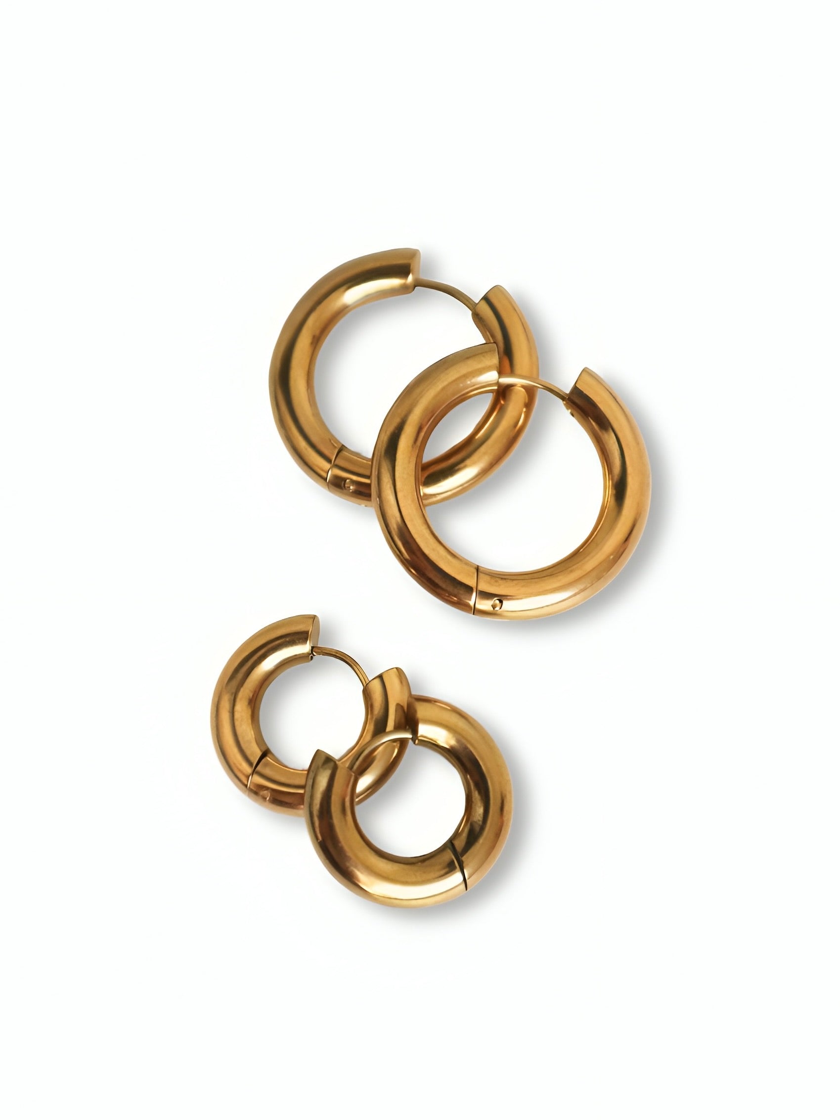 Meet our Gold Chunky Hoop Earrings: bold, beautiful, and effortlessly chic. These hoops make a statement without saying a word. Their chunky design adds a touch of modern flair to any outfit, from jeans and a tee to your favourite little black dress. Radiate confidence and style with these versatile beauties – your go-to accessory for every occasion.