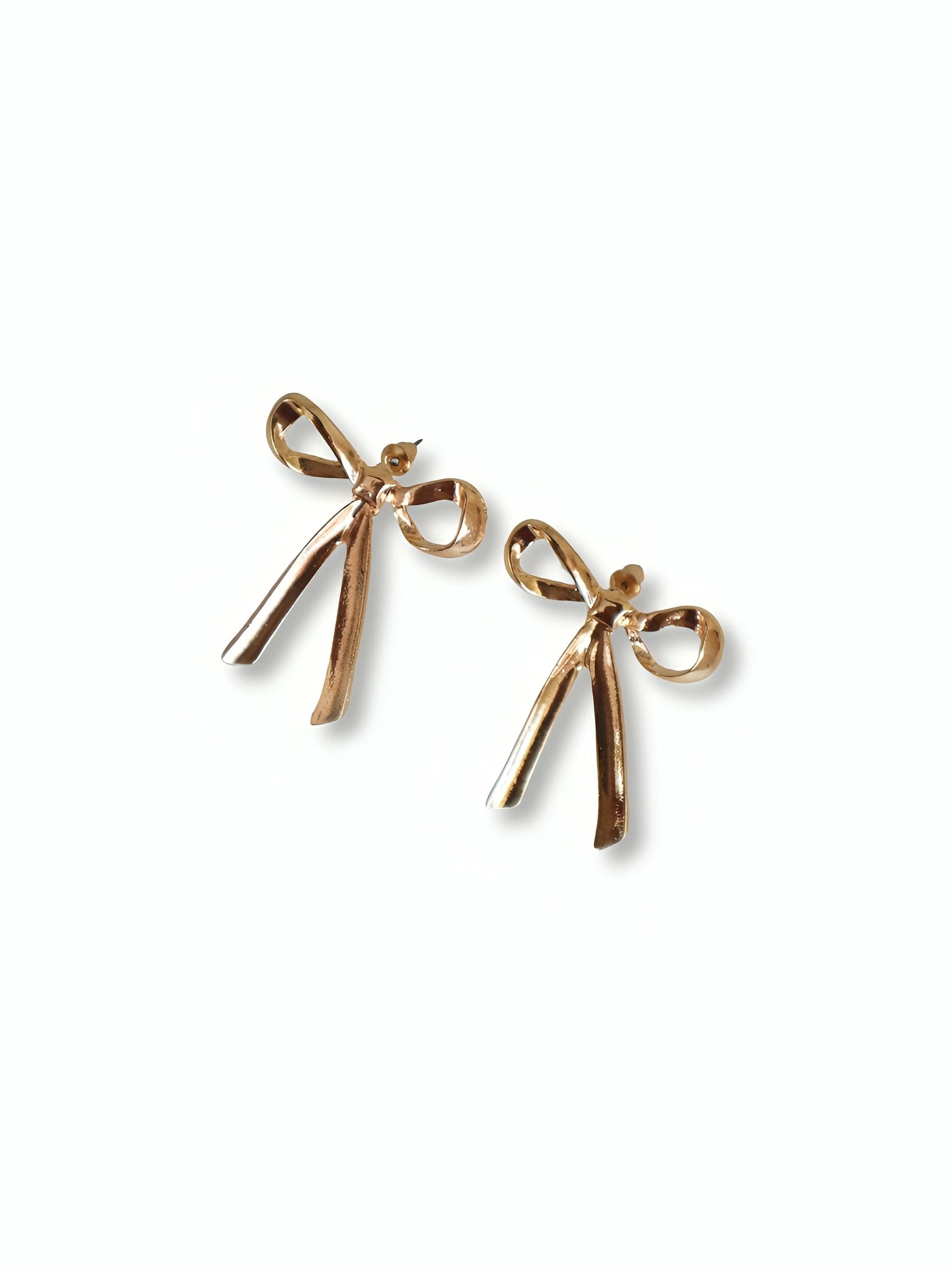 The Gold Ribbon Earrings - a sweet touch to any outfit! Unleash your playful side while maintaining sophistication with these Gold Ribbon Earrings. Their cute yet mature design adds a delightful twist to any outfit, ensuring you exude charm and elegance effortlessly.