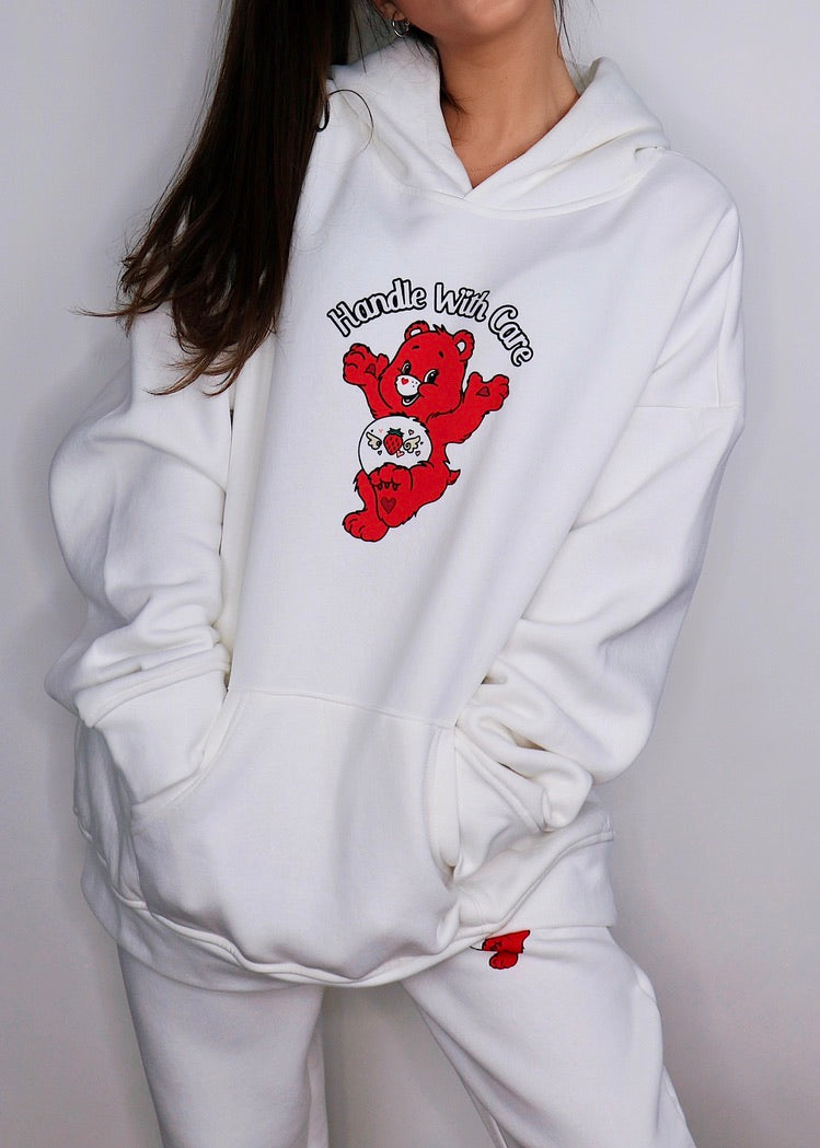 The Strawberry Care Bear that spreads angel energy, is the next cutest thing. This comfy hoodie is bound to keep you cozy while lookin' mega cute.