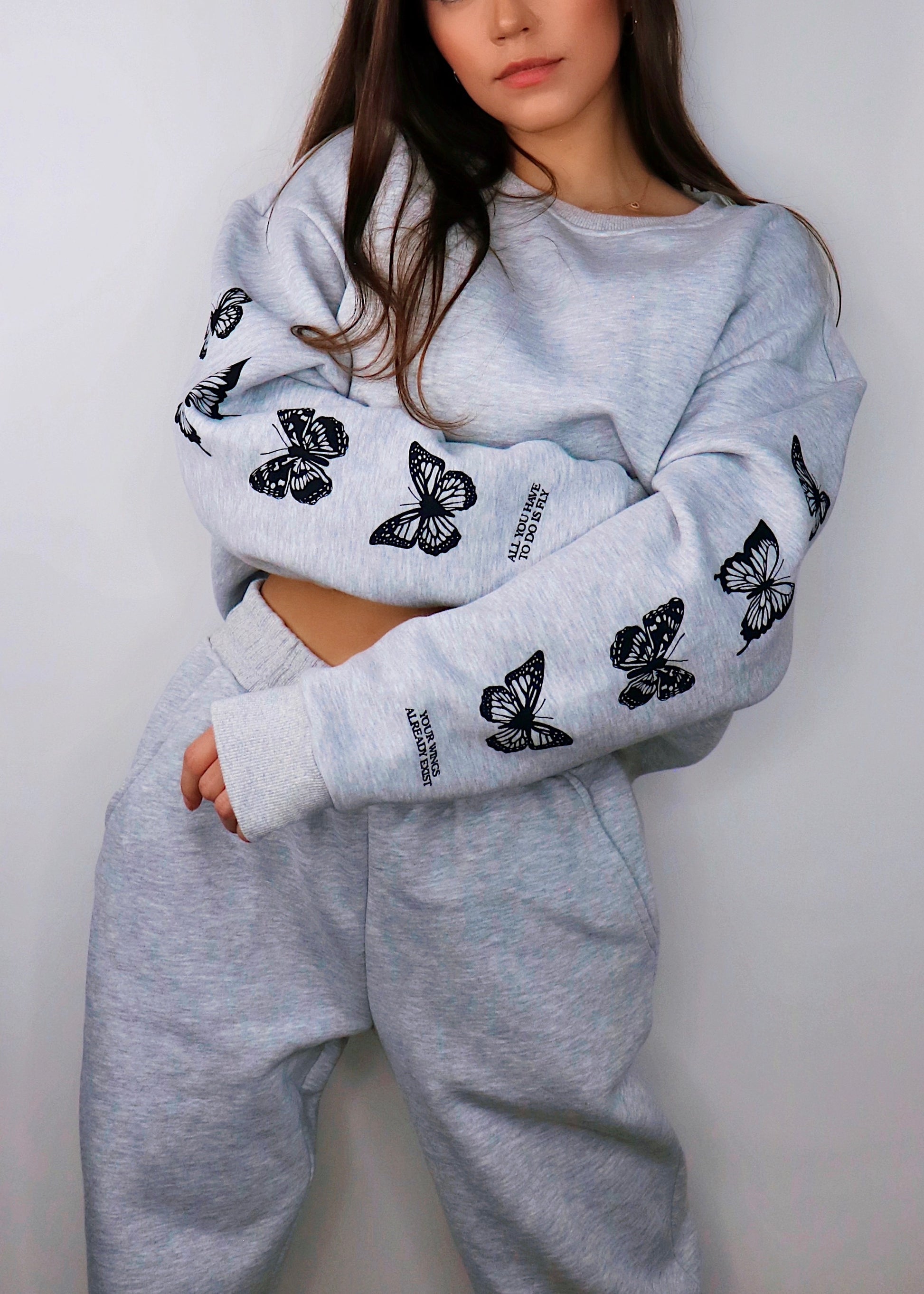The (super comfy) "Just Fly" Crewneck is here to give you a friendly reminder that your wings are ready for you to fly. Believe in your cute self, you can accomplish anything!