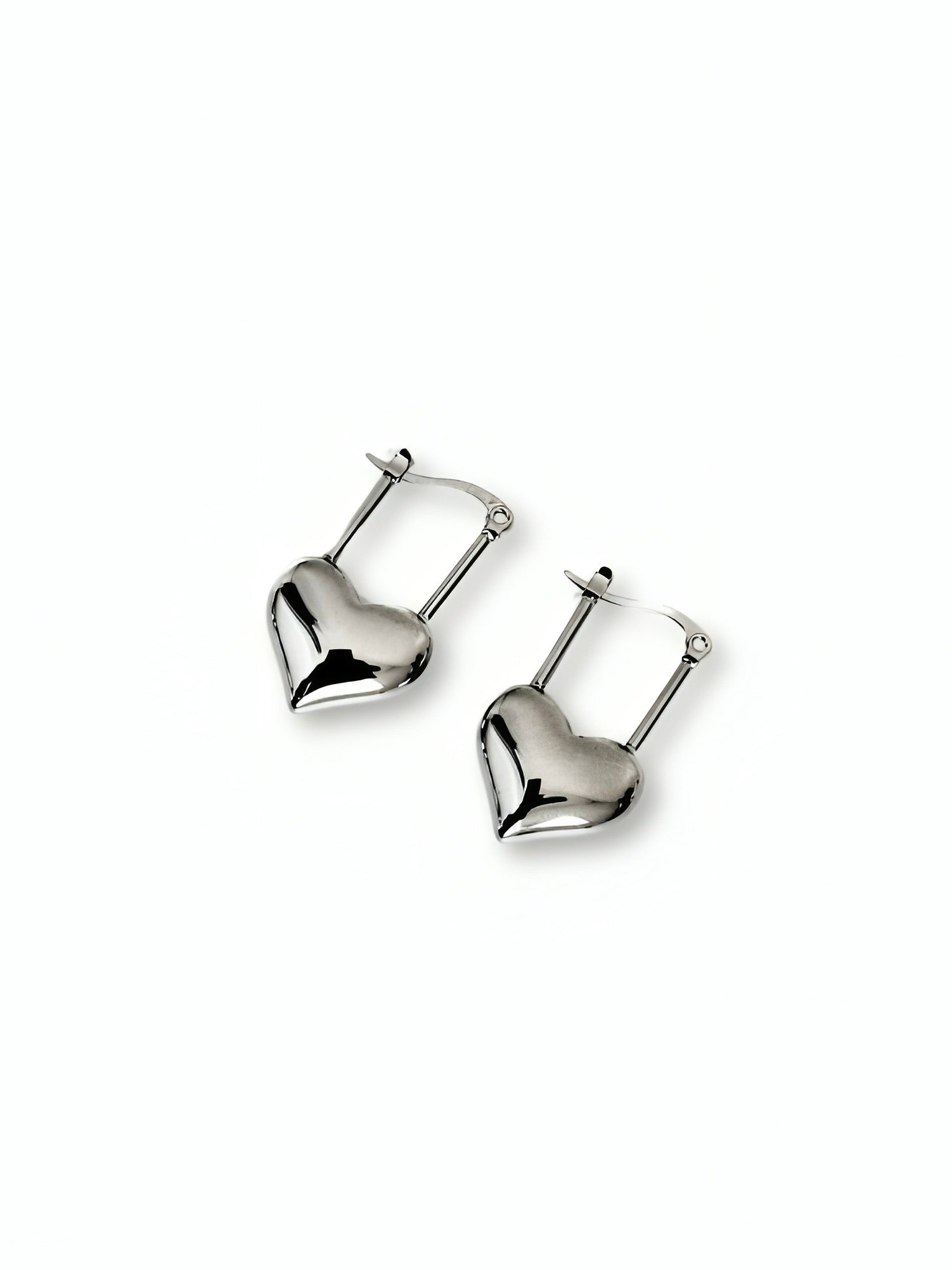 The Silver Heart Lock Earrings – the perfect blend of edgy and cute! These earrings feature a charming heart-shaped lock design in shiny silver, providing a touch of sweetness with an edgy twist to your style. Whether you're feeling playful or bold, these earrings are sure to elevate your look.